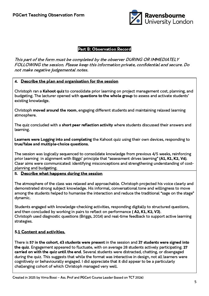The students are part of an international cohort, Year 1, 2nd semester of the BSc Business Management. The observed 1-hour learning activity was part of a longer 4-hour session held in Week 5, on the module "Operations and Project Management".