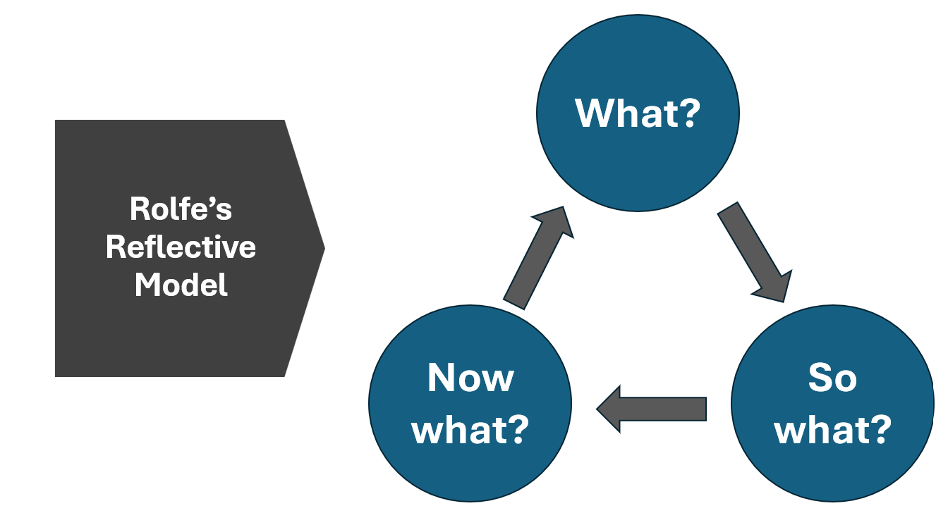 Student 1: The session was great I gained some knowledge on writing with Rolfe's reflective model. Before I only knew about Driscoll and ERA cycle. This time I will be using the new reflective model in my reflection that I just came across.