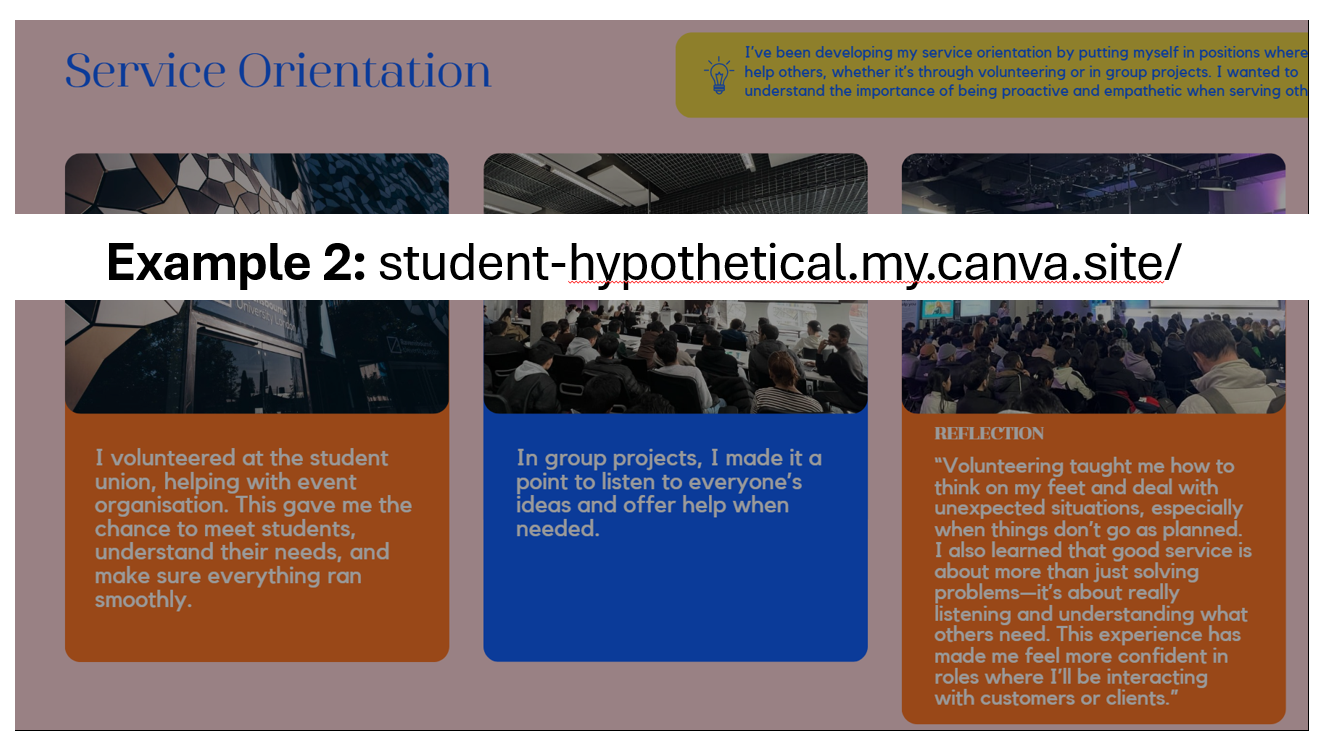 Use of AI: As students were drafting their individual reflection and began curating their evidence, some students clearly reverted back to using AI (LLMs such as ChatGPT) to do their reflection for them. This was despite my strong emphasis earlier in the session that reflection can only be done properly by themselves and AI will be of little help. Spotting the use of AI was comparatively easy as some students' drafts would go from almost 0 words to over 200+ in a matter of minutes, which I noticed when moving around the room. Without exposing individual students, spotting AI misuse live in class helped me make a strong point against misusing AI for various tasks, but specifically for reflective writing. While students using AI would create a draft satisfying word count requirements, the writing was consistently lacking any personal touch, generic, descriptive, and without any sensible feelings or emotions being reflected upon. As a result, although unintended, the exercise helped to emphasise to students that using AI can (at times) be easily spotted and will not be a guarantee of success.