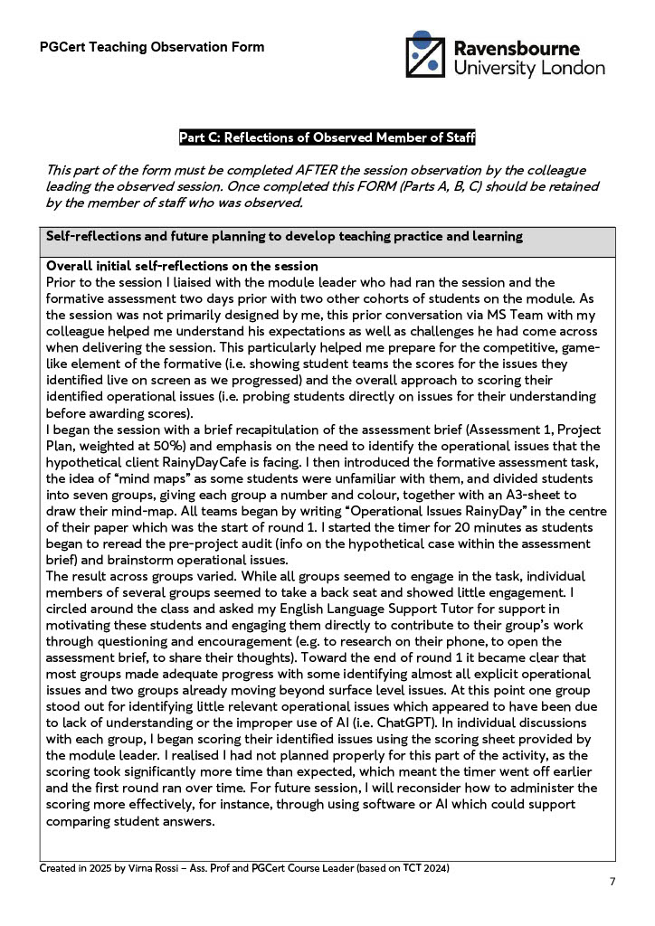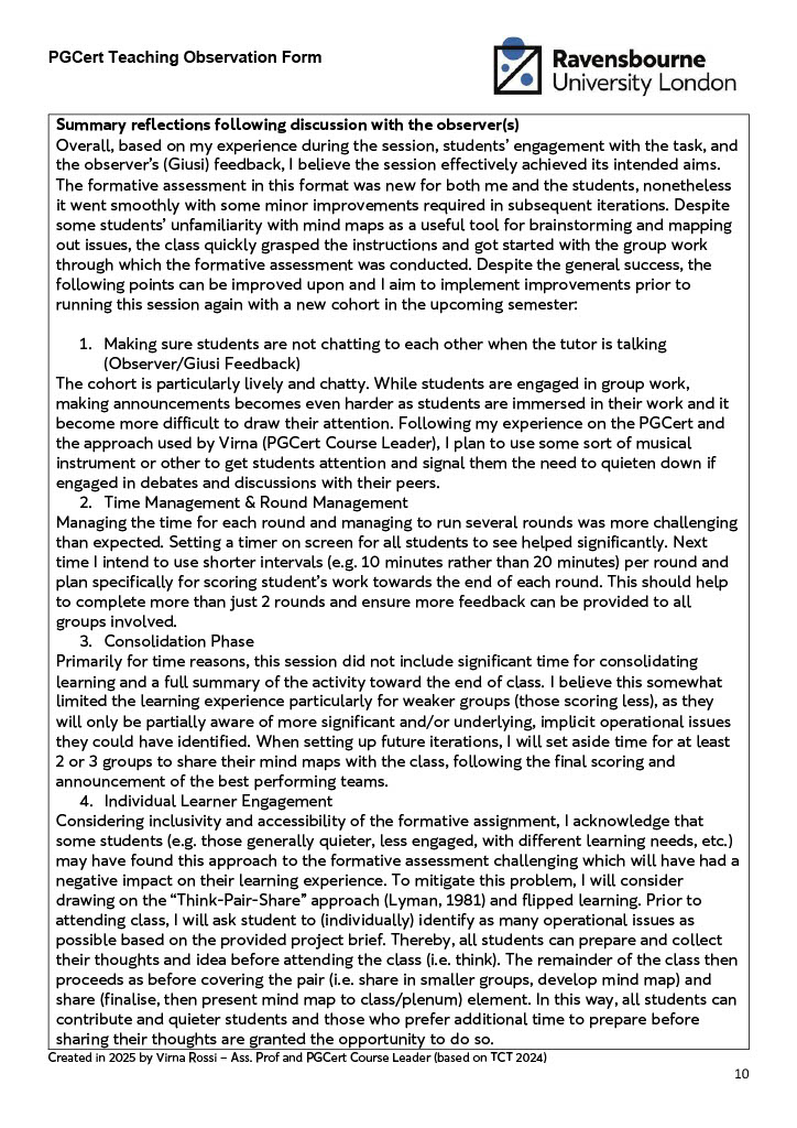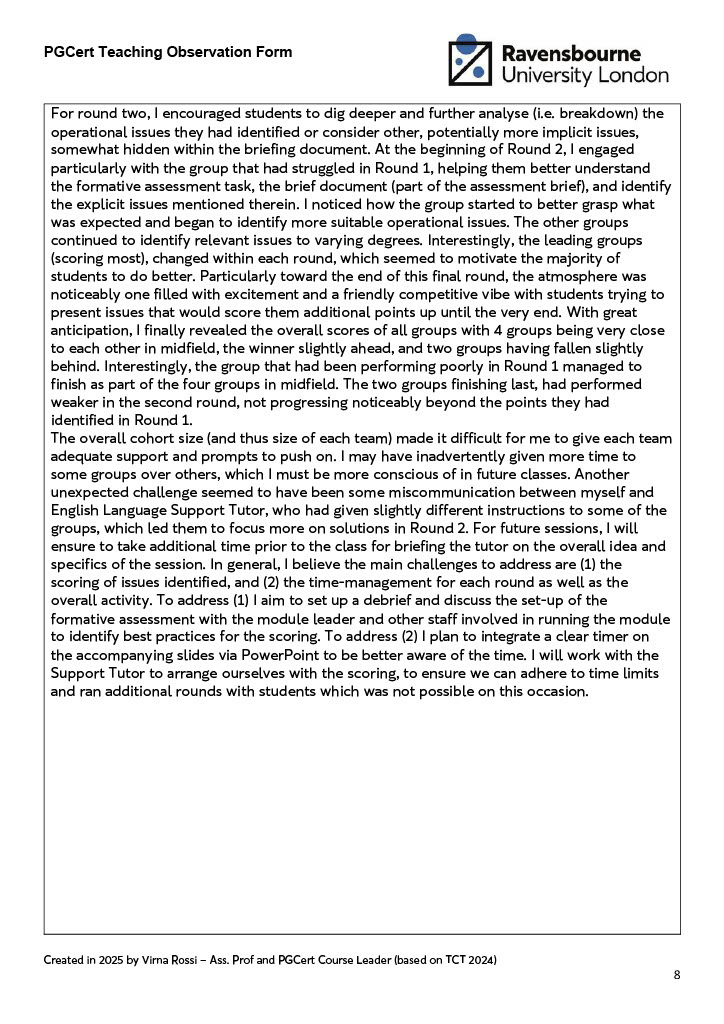 The students are an international cohort in Year 1, 2nd semester of the BSc Business Management. The observed 1-hour lesson observation took part within a longer 4-hour session held in Week 7, on the module "Operations and Project Management".